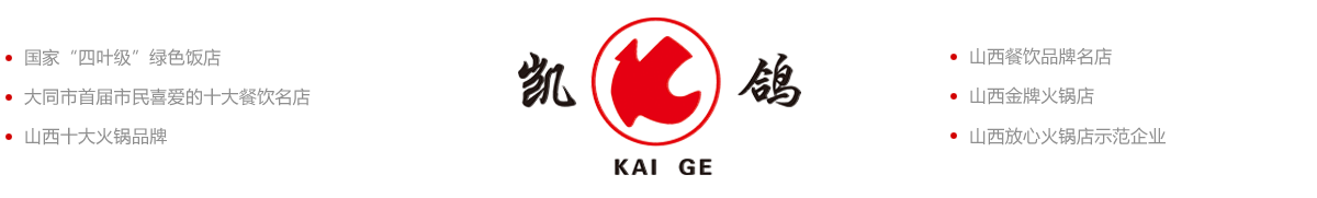 公司自成立以來(lái),已先后榮獲******、省、市各級(jí)人民政府和有關(guān)部門頒發(fā)的“工人先鋒號(hào)”、“四葉級(jí)綠色餐飲企業(yè)”“全省就業(yè)再就業(yè)工作先進(jìn)單位”“山西烹飪餐飲飯店30年功勛企業(yè)”、“山西餐飲品牌名店”、“山西******火鍋店”“山西十大火鍋品牌”“山西放心火鍋店示范企業(yè)”“大同旅游特色美食體驗(yàn)店”等榮譽(yù)。2023年“凱鴿火鍋宴”“西京全羊宴”,被******中餐業(yè)聯(lián)合會(huì)授予“國(guó)際中餐名宴”稱號(hào)。2020年和2022年累計(jì)為抗擊疫情捐贈(zèng)餐費(fèi)約136.8萬(wàn)元。